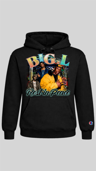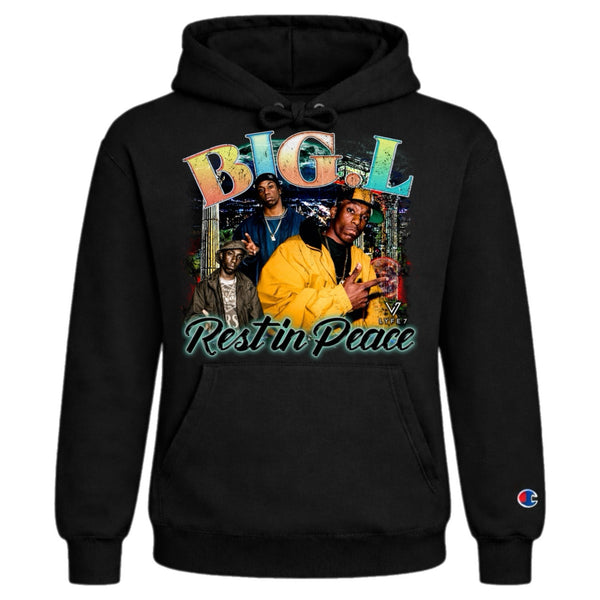 Honor a hip-hop legend with this bold graphic Champion hoodie featuring a vibrant, vintage-style Big L tribute design. Set on a premium navy pullover, it delivers standout streetwear style with everyday comfort.